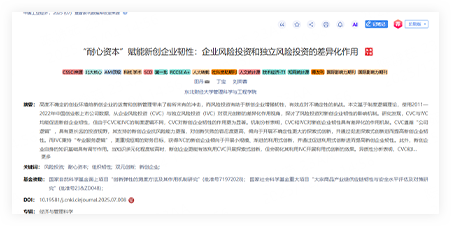② 检索后文章题目下方会展示,文章所属期刊归属目录
